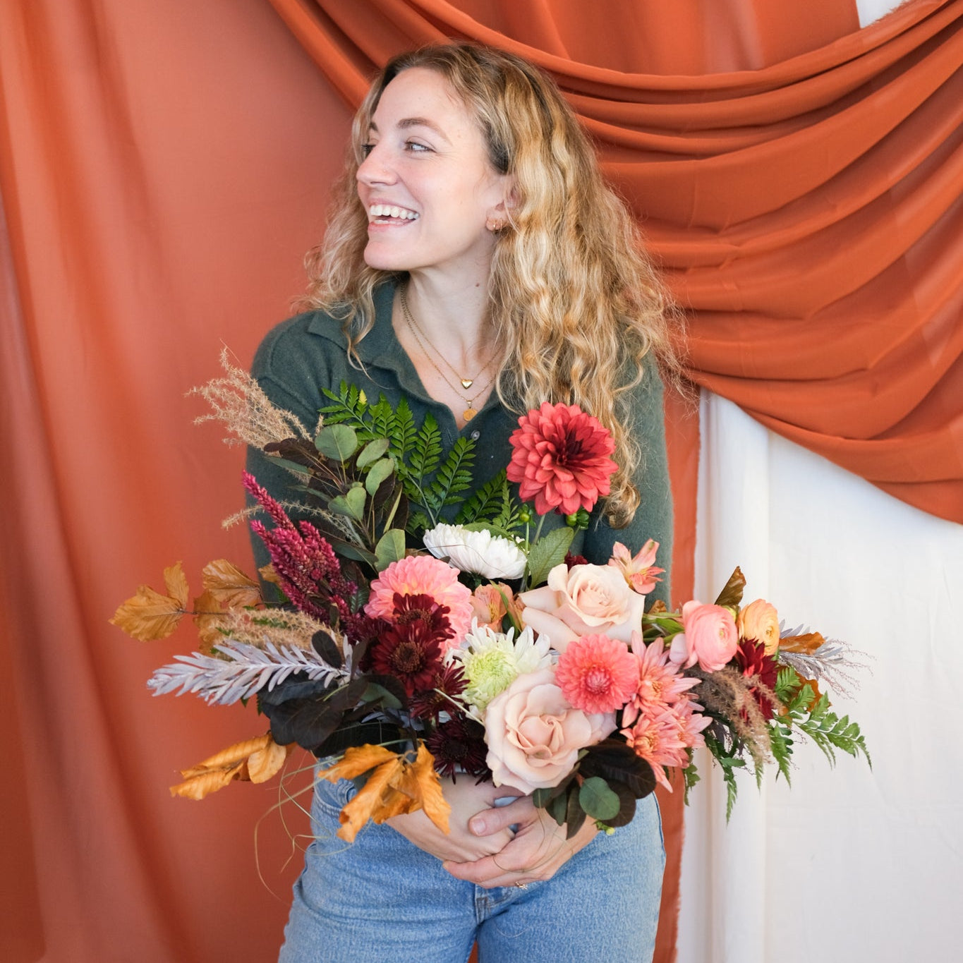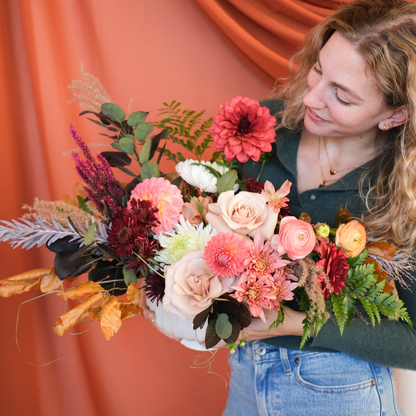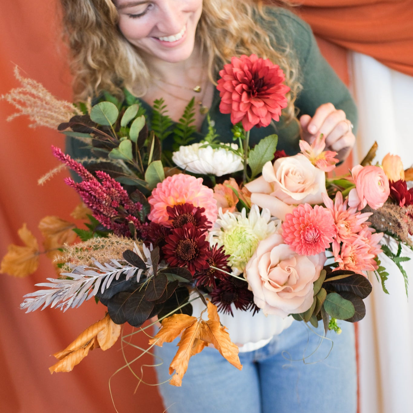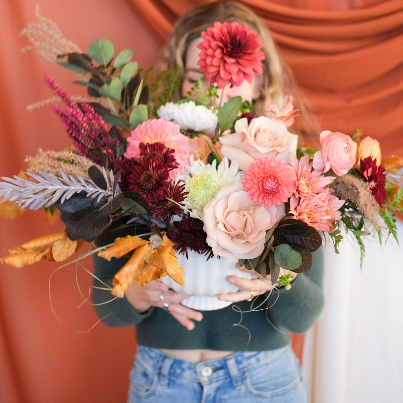 Gather around the table with a centerpiece that feels like fall itself β lush, textural, and full of warmth. Designed in our signature garden-inspired style, this arrangement blends soft, seasonal tones with rich autumn depth to create a piece that feels both elevated and effortless.